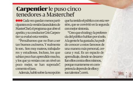 «Cuando me fui me puse entre a llorar y reír porque no sabía cuál era la emoción. El proyecto de Masterchef yo lo describo en dos palabras, montaña rusa. Fue de altos y bajos», indicó.