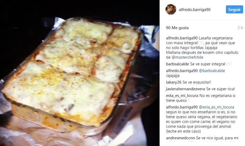 A través de su cuenta oficial de Instagram (@alfredo.barriga90), este aspirante bromeó respecto a este comentario, mostrando otro de sus platos “estrella”.