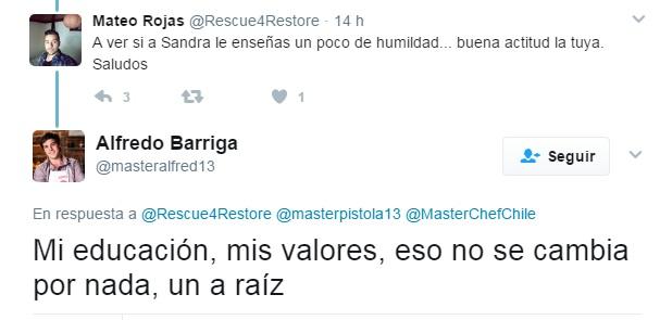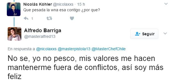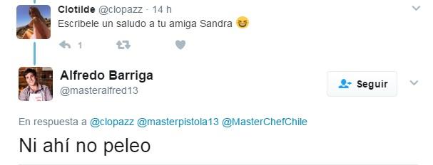 Asimismo, el aspirante le aclaró a más de un usuario en Twitter que no tiene interés en pelear con quien se ha convertido en su rival en “MasterChef Chile”.