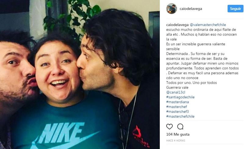 Caio de la Vega, amigo y compañero de Vale en la competencia, salió en su defensa a través de su cuenta personal de Instagram (@caiodelavega).