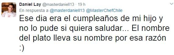 “Ese día era el cumpleaños de mi hijo y no lo pude si quiera saludar... El nombre del plato lleva su nombre por esa razón”, escribió Daniel, quien también se refirió al plato que presentó en la prueba de eliminación.