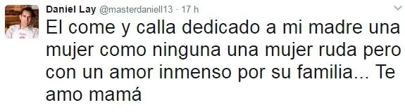 “El come y calla dedicado a mi madre una mujer como ninguna una mujer ruda, pero con un amor inmenso por su familia... Te amo mamá”, destacó Daniel, quien no causó una gran impresión ante el jurado con su plato.