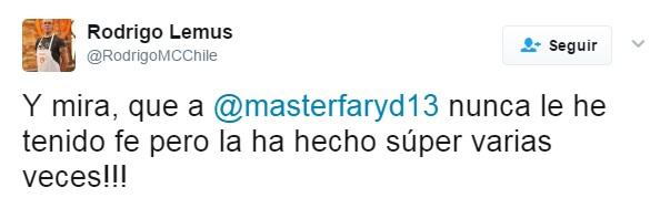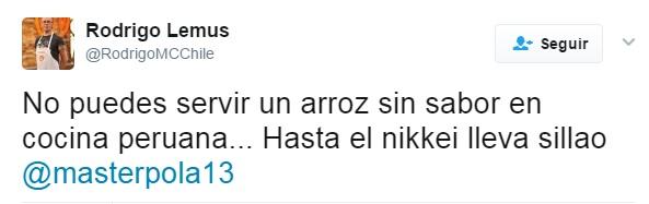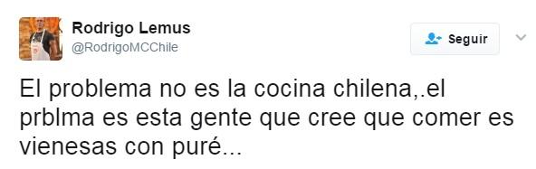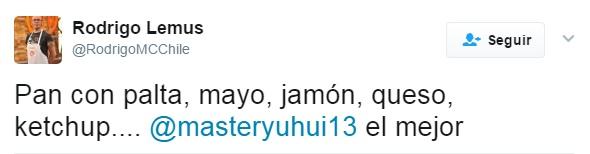 Actualmente, Rodrigo sigue relacionado con su pasión por la buena mesa y, a través de su cuenta oficial de Twitter (@RodrigoMCChile), aprovechó de escribir sin filtro sobre los nuevos concursantes del espacio que lo hizo conocido.