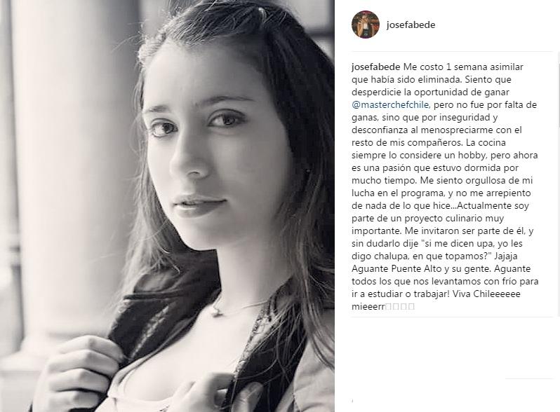 A través de su cuenta oficial de Instagram (@josefabede), esta ex aspirante hizo un mea culpa respecto a su paso por el programa de cocina más importante del país.