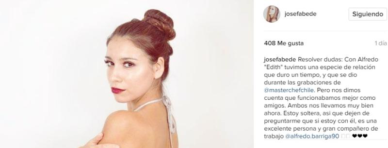 A través de su cuenta de Instagram (@josefabede), Josefa aclaró las dudas sobre su relación con Alfredo, sorprendiendo a varios con sus palabras.