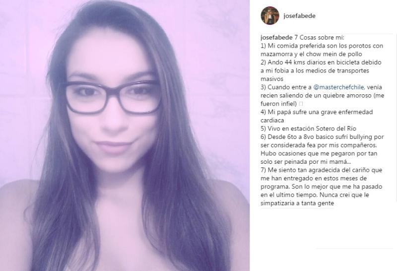 A través de su cuenta oficial de Instagram (@josefabede), la estudiante de periodismo contó 7 aspectos desconocidos sobre su vida fuera de las cocinas de nuestro programa.