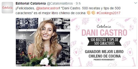 A través de su cuenta oficial de Twitter, Daniela destacó el logro, algo que también hizo la editorial Catalonia, la cual permitió la publicación de “500 recetas y tips de 500 caracteres”.