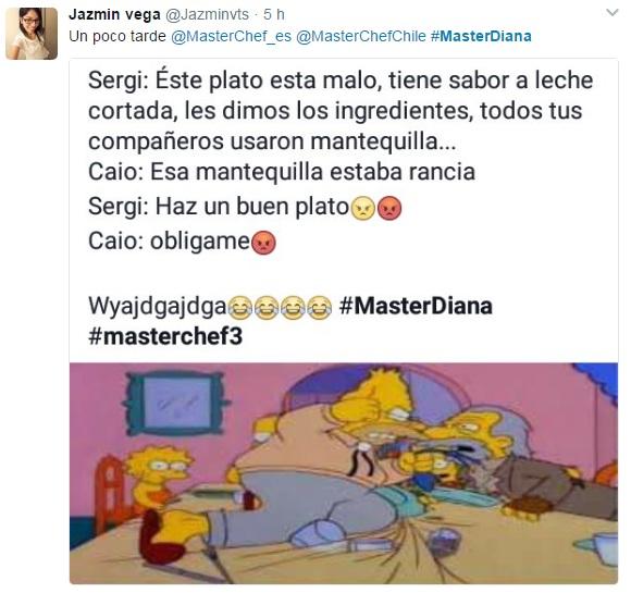 Las redes sociales no tuvieron piedad al momento de comentar lo ocurrido con Caio, desatando memes y bromas producto de su actitud en el capítulo que tuvo a #MasterDiana como hashtag. Esto debido al especial rol que tuvo nuestra conductora.