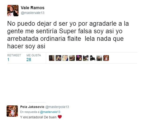 “Soy así, soy arrebatada, ordinaria, flaite, lela, nada que hacer. Soy así”, escribió la joven, quien recibió el apoyo de una ex compañera de competencia, Pola, quien destacó también que es “encantadora y de buen corazón”.