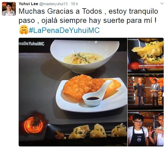 El logro de Yuhui le trajo una serie de buenos comentarios en redes sociales, los cuales dieron pie a que él mismo –a través de esa misma vía- agradeciera las palabras que recibió durante la emisión de “MasterChef Chile”.