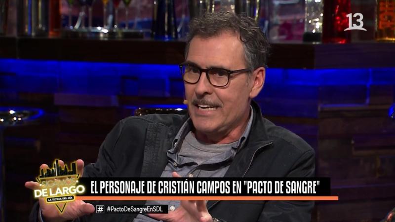 Hasta el momento, no ha aparecido en pantalla. Sin embargo, Cristián Campos tiene un personaje relevante en “Pacto de Sangre”, la producción dramática que se tomó las noches de Canal 13 de lunes a jueves.