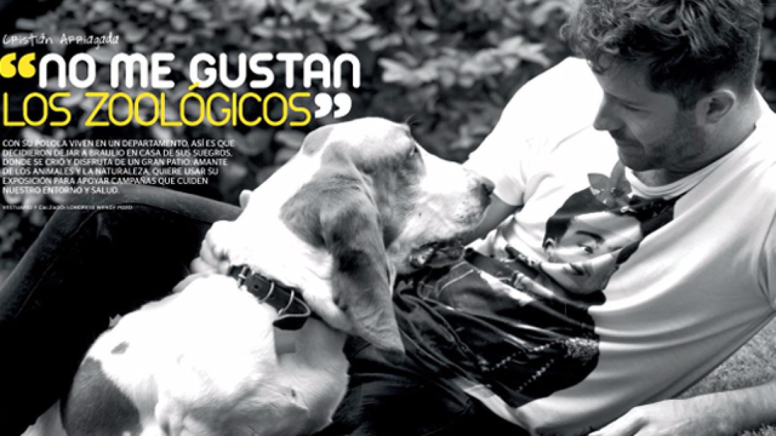 La revista Mestizos lo entrevistó para conocer más sobre su relación con la naturaleza y los animales, y les presentó a Braulio, un tierno Basset Hound. Para aclarar, no es su mascota, sino de su polola, la diseñadora gráfica María Cecilia González. Aunque, como viven en departamento, prefirieron dejarlo en casa de sus suegros, donde disfruta de un gran patio. “Después que empezamos a pololear, llevamos 4 años juntos, pasé a ser su papá adoptivo. Pero Braulio siempre vivió en casa de mi suegra, con harto jardín, entonces no pudimos llevarlo. Nosotros vivimos en departamento, entonces me parece un crimen para un perro que se ha criado en libertad”.