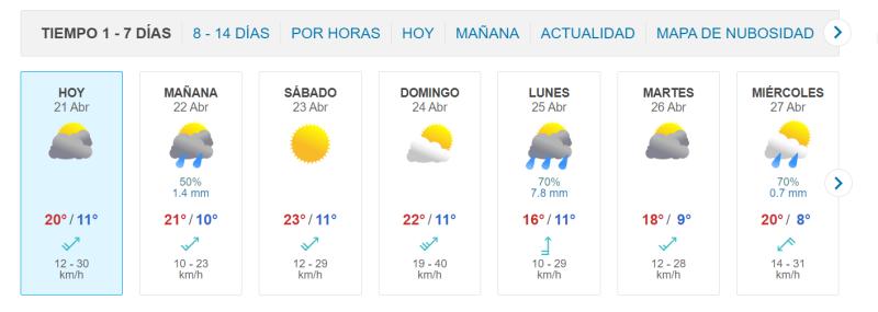 Según notificó Meteored, no sería el lunes, sino mañana viernes 22 de abril cuando llegarían los primeros chubascos y precipitaciones a la capital, con una mínima de 10° y una máxima de 20°C.