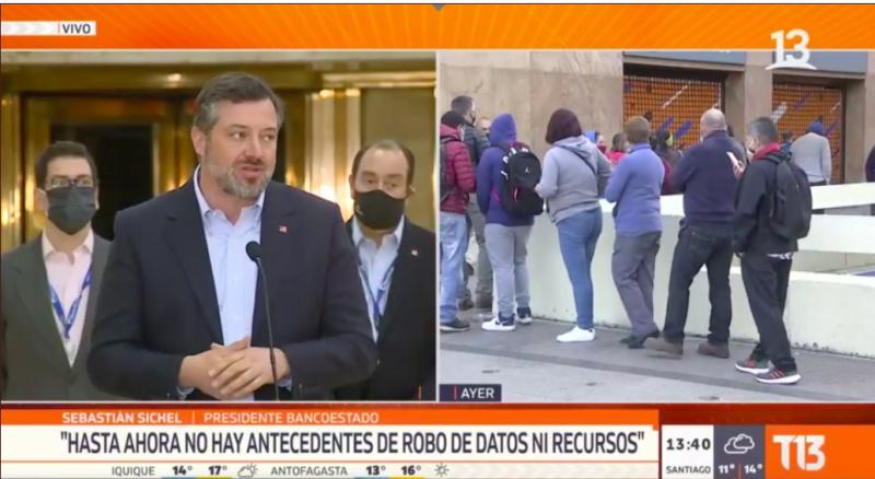 Durante la tarde de este martes, el Presidente de Banco Estado, Sebastián Sichel confirmó que el ataque "no logró llegar a datos e información personal o ahorros de las personas”. Con esto, descartó la pérdida patrimonial de la entidad, luego de los ciberataques ocurridos este fin de semana, lo que obligó el cierre de sus sucursales durante la jornada de ayer, y junto con eso, el establecimiento de una querella por sabotaje informático.