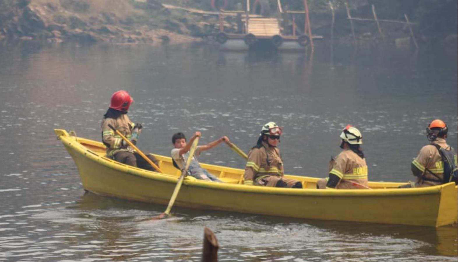 El menor es Lucas, quien al ver en aprietos a los bomberos que iban a combatir el incendio forestal que estaba al otro lado del río, los ayudó transportándolos en su bote.