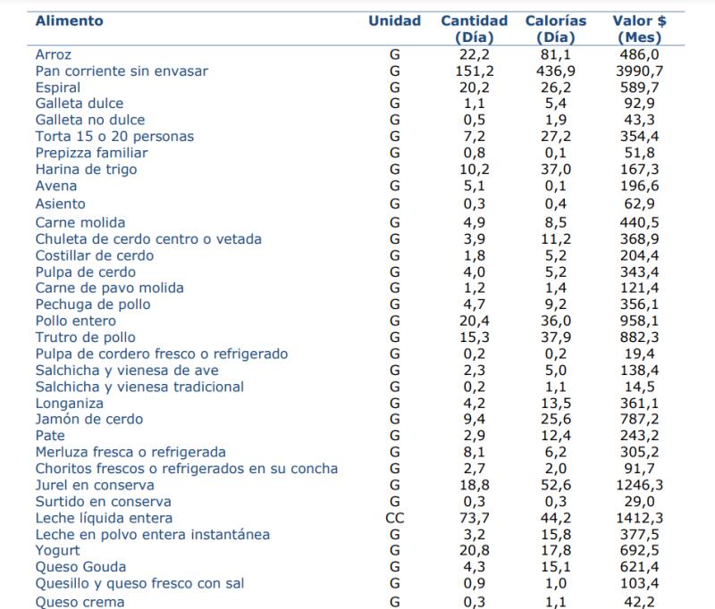 Es por eso que el Ministerio de Desarrollo Social y Familia se ocupa de definir estos productos, los cuales tienen un valor mensual, sacado por la cantidad al día que consumiría la familia. Dicho esto, la canasta básica se compone de: