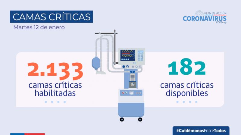En el tradicional informe diario desde La Moneda se señaló además que de todos estos pacientes 766 están con ventilación mecánica, lo que corresponde al 80% de los pacientes UCI. Cifra alarmante y que ha hecho que la autoridad sanitaria haya modificado el plan "Paso a Paso", hasta este martes también se informó que todavía quedan 182 camas críticas disponibles en la red hospitalaria integrada de covid-19.
