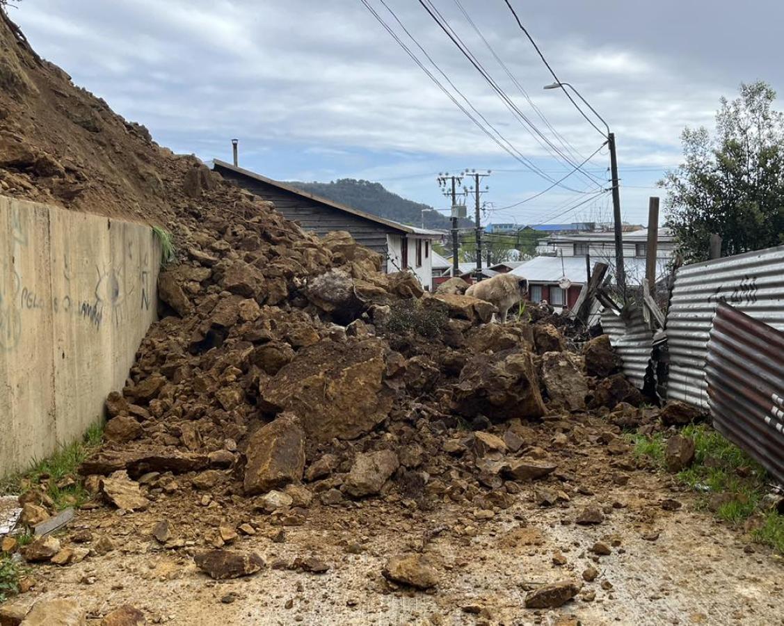 Mediante sus redes sociales, la Municipalidad de Lebu informó que el deslizamiento ocurrió en la calle Diagonal Freire, hasta donde llegó personal especializado para evaluar la situación.