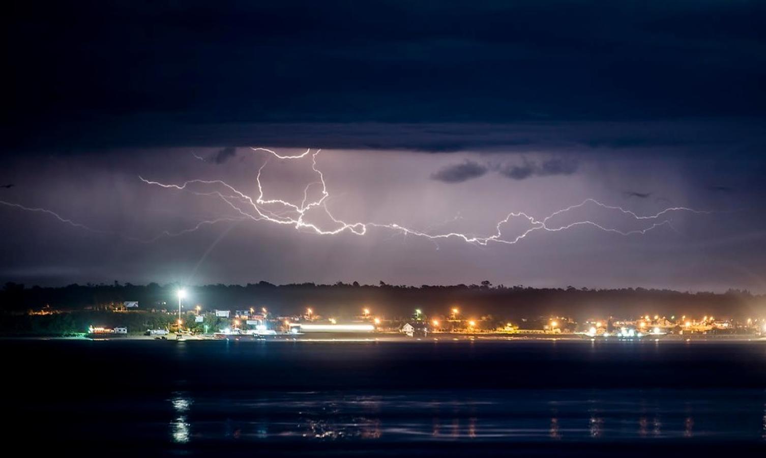 La DMC dijo que las tormentas eléctricas estarán localizadas en la provincia de Chiloé y el tramo costero de la provincia de Palena, en la Región de Los Lagos.