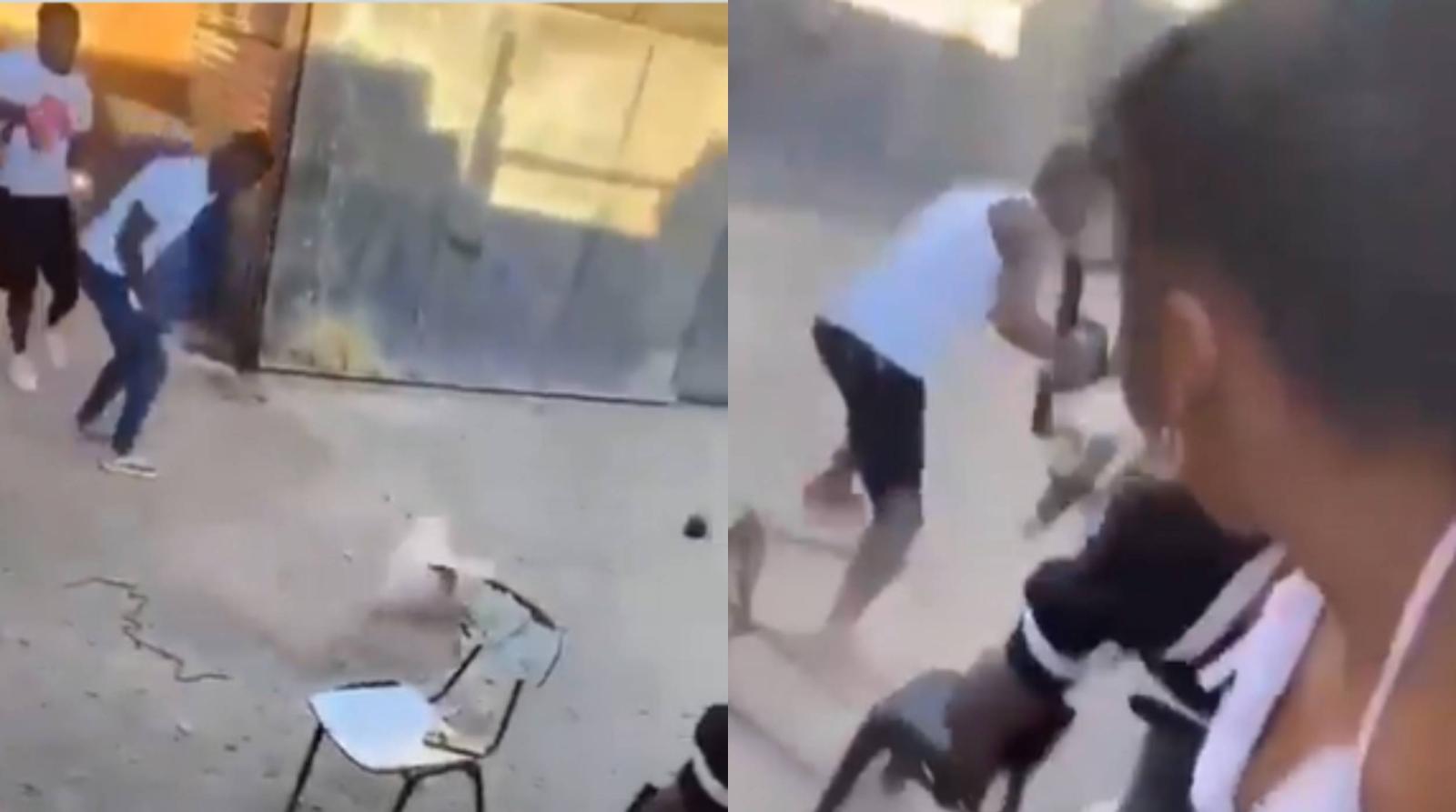 De acuerdo a un impactante registro viralizado en redes sociales un grupo de hombres extranjeros comienza a patear y golpear a un perro que les ladraba mientras una persona graba y el resto se ríe a carcajadas.