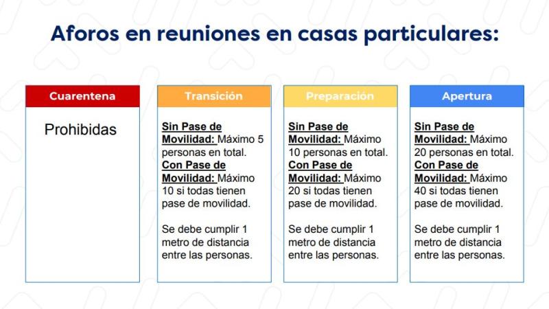 Al igual que en el caso de otras medidas, las personas con su esquema de vacunación completo contarán con más libertades a través del pase de movilidad. "Los nuevos aforos para reuniones en domicilios son mayores para aquellas personas que han concluido con su esquema de vacunación", declaró la autoridad.