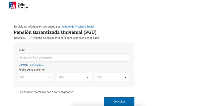 Con ambos datos, el sistema determinará si la persona debe solicitar la PGU. En caso de que deba postular, se deriva al formulario de solicitud en línea, al cual se ingresa con Clave Única.