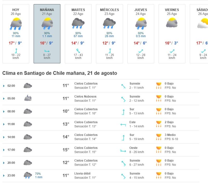 Al respecto, mucha gente se pregunta cuándo volverán las precipitaciones y el pronóstico del tiempo para este lunes 21 de agosto en Santiago.