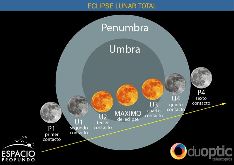 A modo general, el evento astronómico tendrá lugar la madrugada del miércoles 26 de mayo, comenzando a las 04:47 horas, y alcanzará su totalidad a las 07:18 horas, terminando unos 23 minutos después.