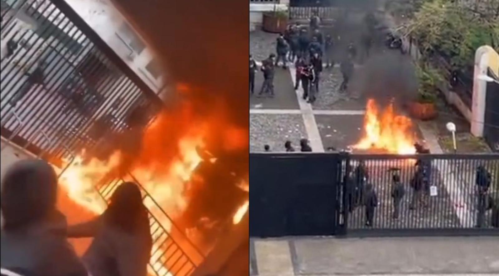 Reportan incendio al interior del Instituto Nacional: Encapuchados habrían lanzado bombas molotov