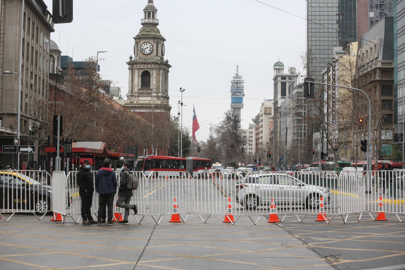 Carabineros, representado por el coronel Emilio Teixidor, indicó que "si no es estrictamente necesario venir al centro de Santiago, especialmente durante el día lunes que es hábil, no hacerlo en vehículos particulares".