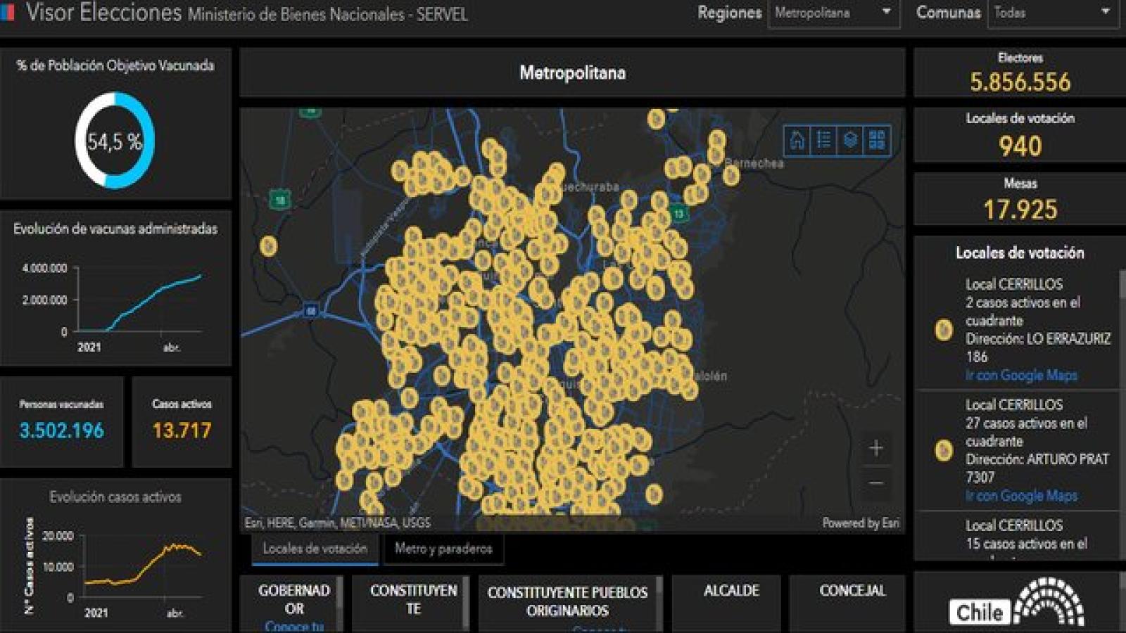 También permite revisar los datos del local, la cantidad de electores y otras cifras vinculadas a la pandemia, como el porcentaje de población objetivo vacunada contra el Covid-19.