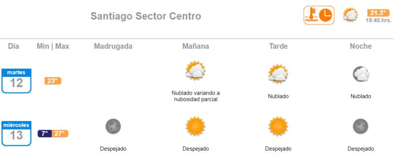 En el territorio insular, la afectada por las lluvias será la zona de Isla de Pascua, que registrará chubascos a lo largo de todo el miércoles, con cielos nublados, variando a nubosidad parcial y con una agradable máxima de 25°C.