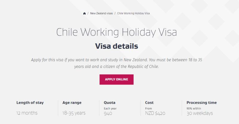 Asimismo, las solicitudes para chilenos y chilenas solo se pueden realizar por internet y permitirán trabajar en Nueva Zelanda por 12 meses o estudiar por un total de 6.