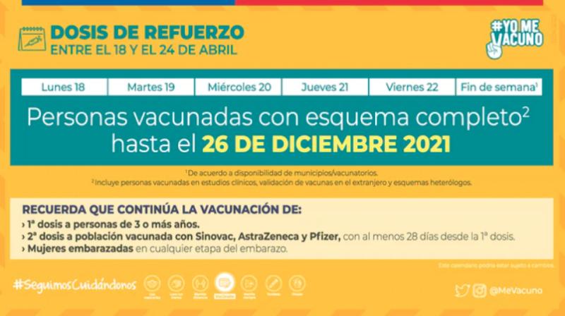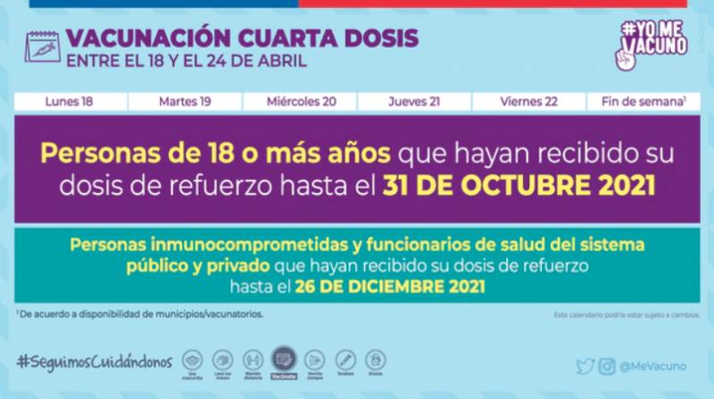 Cabe señalar que dentro de esto también se incluye a las personas inmunocomprometidas, funcionarios de la salud pública y privada, quienes se hayan vacunado con dosis de refuerzo o tercera dosis hasta el 26 de diciembre del año pasado.