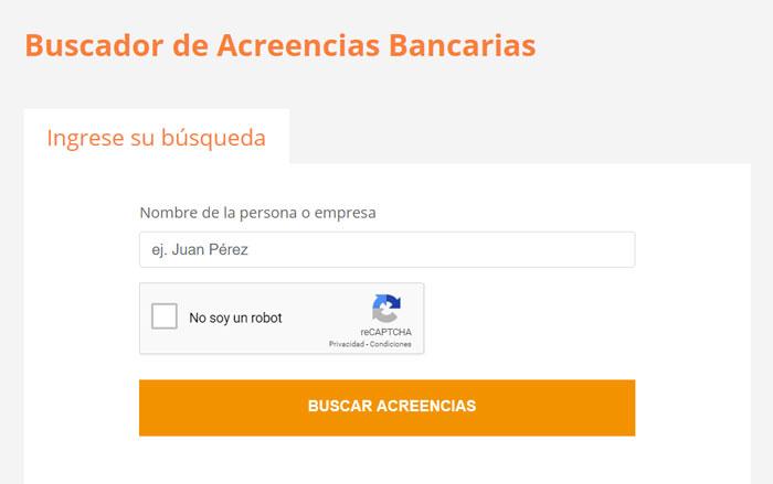 Detalle importante: las acreencias bancarias que se informan son montos superiores a 5 Unidades de Fomento. Si la persona desea buscar acreencias menores a esta cantidad, debe consultar directamente en cada entidad bancaria.