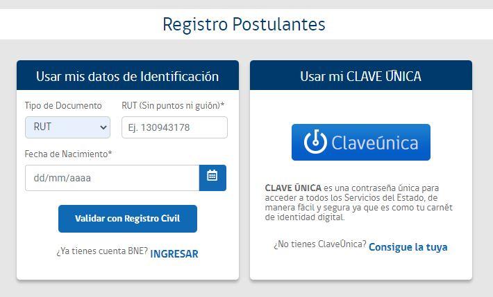 Para poder acceder a las vacantes disponibles debes registrarte en la Bolsa Nacional de Empleo. Para ello puedes inscribirte con Clave Única o utilizando los datos de tu carnet de identidad. Es importante completar todos los datos marcados con un asterisco ya que son obligatorios.