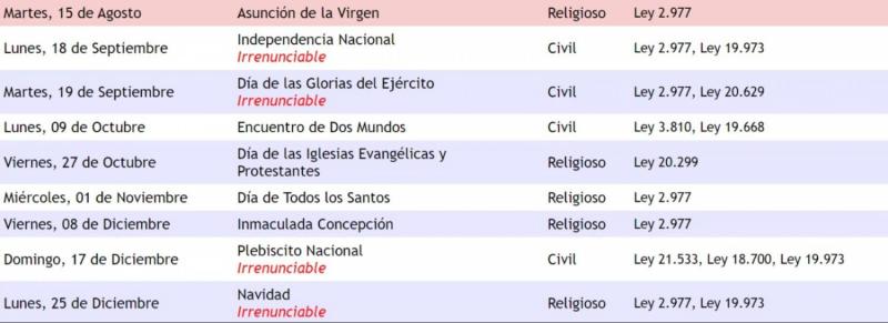 Contando los irrenunciables como los que no lo son, revisa los que quedan en Chile según el sitio Feriados.cl:
