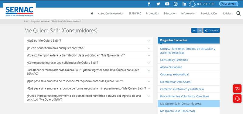El Servicio Nacional del Consumidor (Sernac) puso en marcha la nueva plataforma "Me Quiero Salir", una web que facilitará el término de contratos entre usuarios y empresas de servicios de telecomunicaciones.