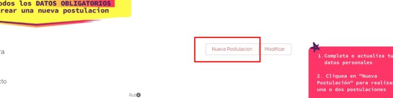 Ingresa al sitio de Talento Digital para postular y regístrate con tus datos. Una vez que accedas, ingresa (o actualiza) tus datos. Luego ingresa en Nueva Postulación.