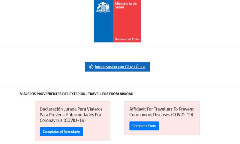 Para solicitar el pasaporte sanitario, se debe ingresar al sito web www.C19.cl y seleccionar la "Declaración Jurada Para Viajeros". Una vez dentro de este link, se deben completar los datos que exige el sistema y descargar el documento.