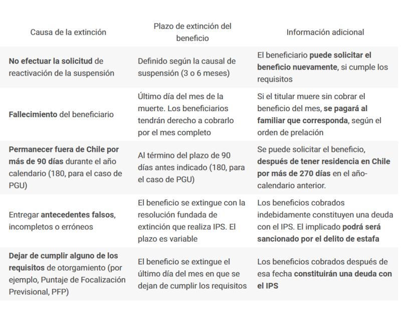 - El beneficiario no cobra la Pensión Garantizada Universal durante seis meses continuos.