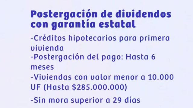 El llamado “Plan de Protección a la Clase Media”, que busca apoyar a los afectados por la crisis del Coronavirus, contempla 4 ejes que son: créditos blandos, subsidios de arriendo, postergación de dividendos hipotecarios y acceso al crédito con aval del estado.