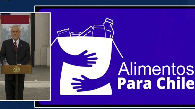 El Presidente Sebastián Piñera reveló detalles de la campaña “’Alimentos para Chile’, que busca distribuir 2.5 millones de canastas de alimento y elementos de limpieza para poder llegar a los hogares vulnerables y a los hogares de clase media necesitada’.