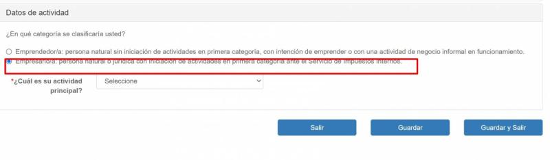 Luego, ingresa la página de “Reactivate Pyme” haciendo clic aquí. Desliza la página hacia abajo y haz clic en tu región. Si tienes ClaveÚnica puedes usarla para registrarte. Luego, completa tus datos en el formulario y en “Datos de actividad” selecciona la segunda opción.