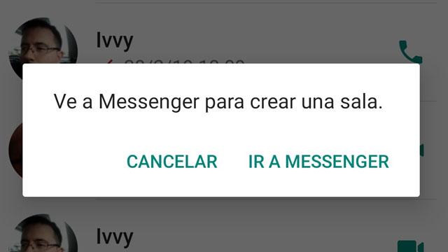 Con cualquiera de las opciones, se desplegará un mensaje que te enviará a Messenger para, en el siguiente paso, crear una sala.