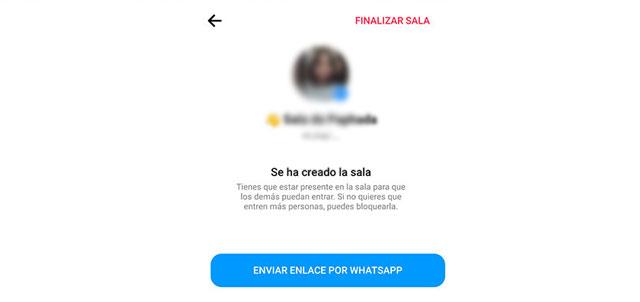 Una vez creada la sala, se debe pulsar el botón Enviar enlace por WhatsApp que va a aparecer al final del proceso. Aparecerá en azul en la parte inferior de la pantalla.