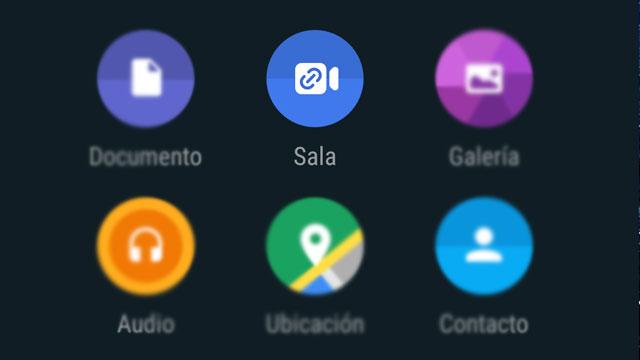 Existen dos maneras para iniciar una videollamada masiva. La primera es desde una conversación, donde en el chat de conversación bastará con pulsar en el icono del clip para enviar un archivo a otra persona o a miembros de un grupo. esplegado el menú se debe pulsar en la opción de sala.
