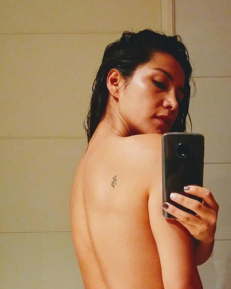 Loreto Aravena muestra el tatuaje que considera un “error de juventud”