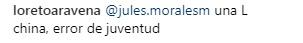 Al ser consultada por uno de ellos sobre el tatuaje, Loreto aclaró que en verdad se trataba de una L china. “Error de juventud”, destacó la figura de producciones como “Los 80”, “Preciosas” y “Chipe Libre”.