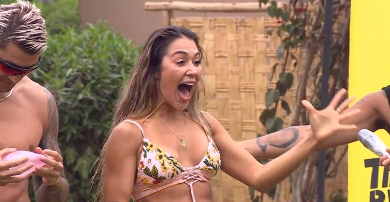 Una entretenida actividad tuvo a los participantes compitiendo en traje de baño. La idea era que Matías Vega nombra una cualidad y todos debían arrojarle bombitas de agua a la persona que le acomodara el título.